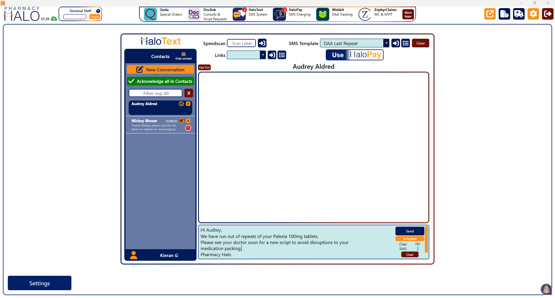 With HaloText – our SMS module that is free-to-access within the Pharmacy Halo Hub – you can revolutionise patient communication with the ability to message directly at any point during the packing process.